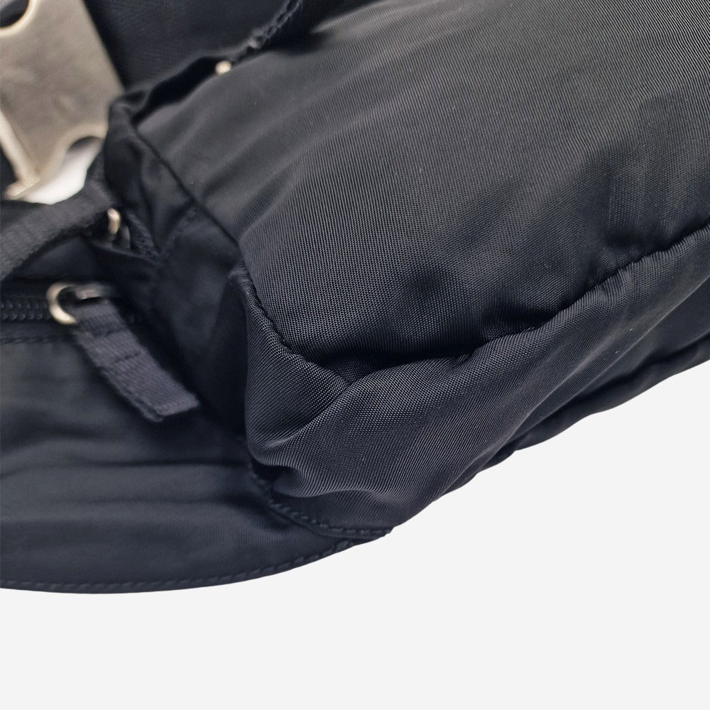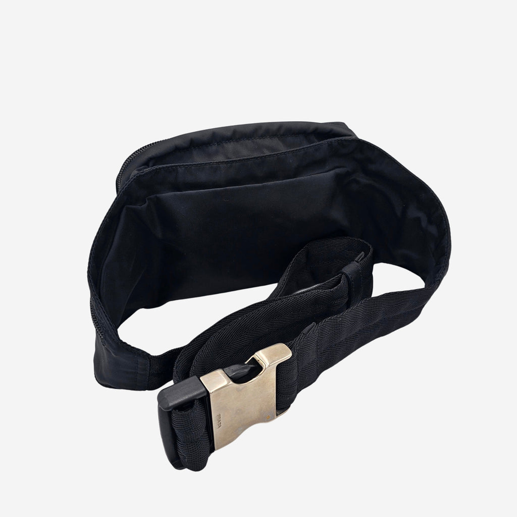Inspireret af militærets faldskærme, begyndte Prada at arbejde med nylon i 1984. Efter Prada´s relancering af nylon-taskerne, er de gamle vintage tasker blevet et hit igen. Denne cool bæltetaske er fremstillet i nylon og er udsmykket med deres berømte mærkevarelogo på fronten. Bæltetasken har to lynlåsrum, som kan indeholde din pung, telefon samt nøgler. Den har desuden to små lynlåslommer på siden. Tasken kan både bæres om livet eller over brystet som crossbody. Bæltetasken er unisex-model og er fantastisk til både mænd og kvinder.