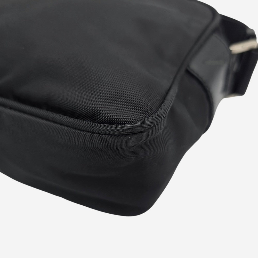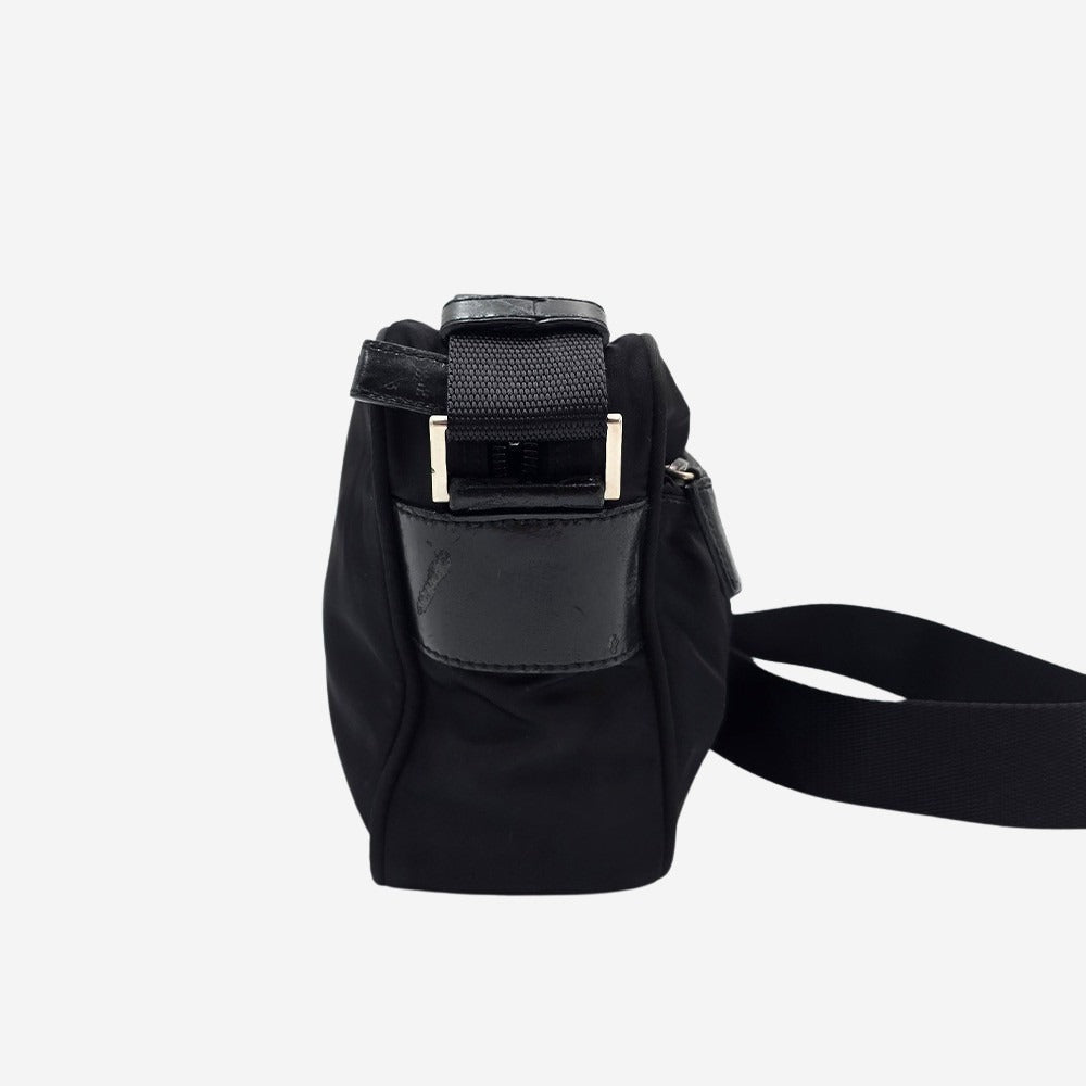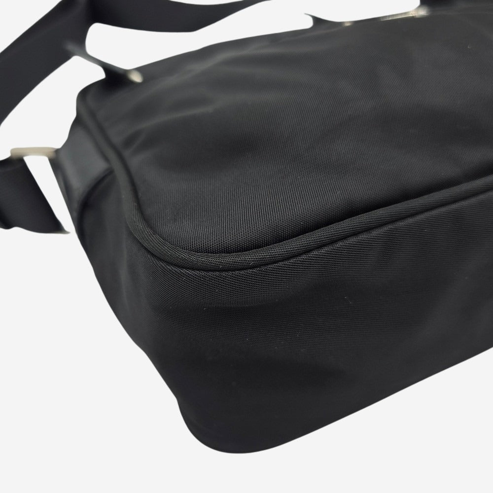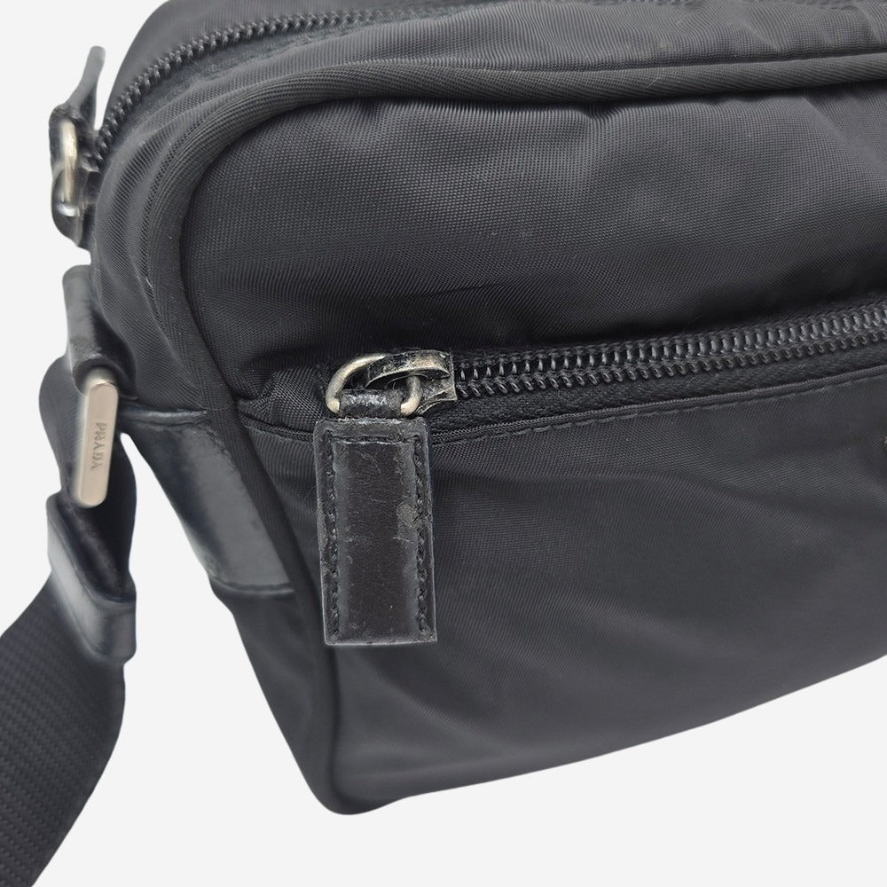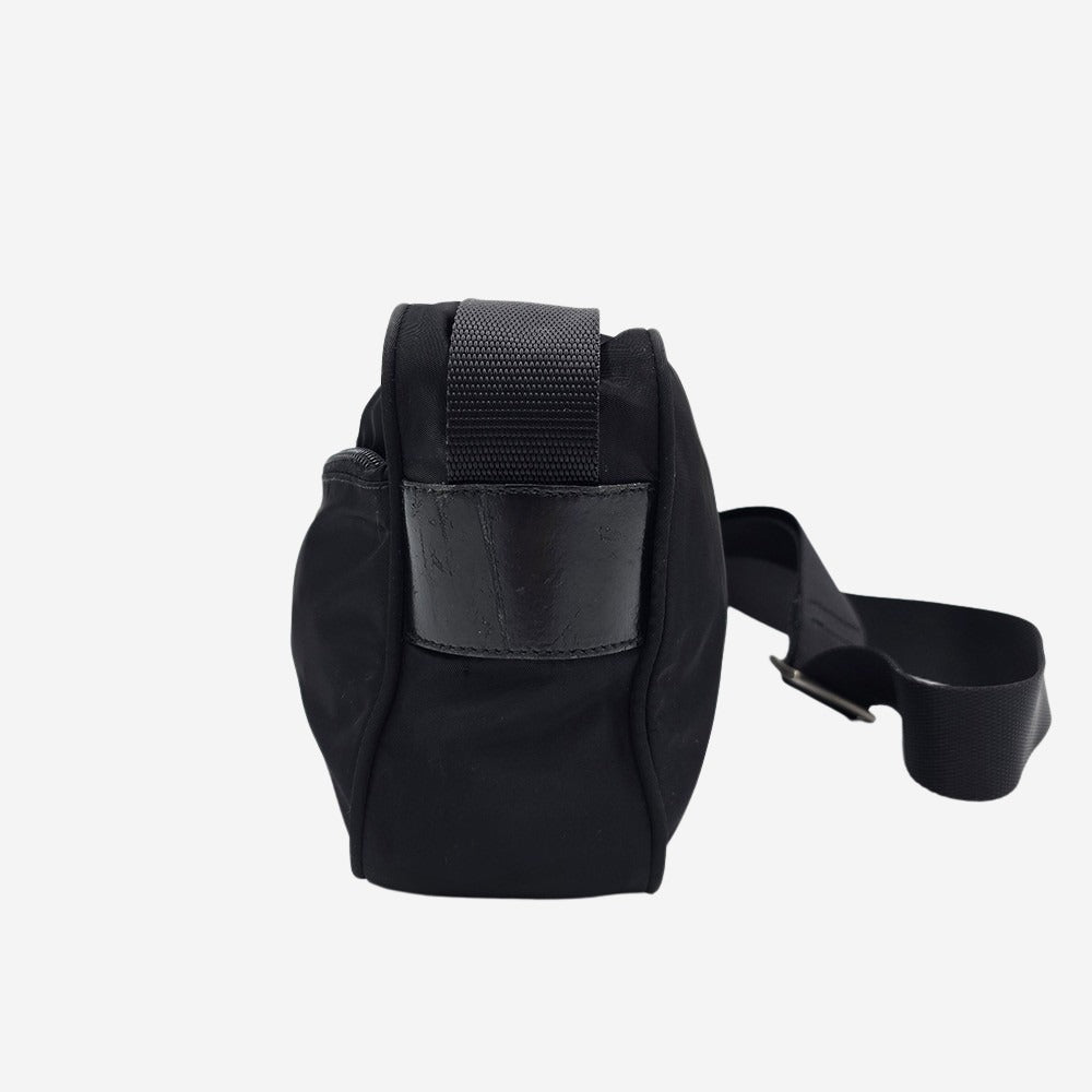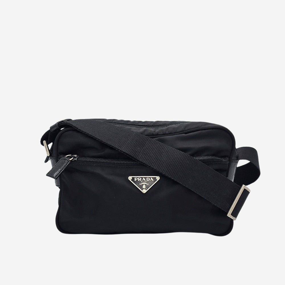 Inspireret af militærets faldskærme, begyndte Prada at arbejde med nylon i 1984. Efter Prada´s relancering af nylon-taskerne, er de gamle vintage tasker blevet et hit igen. Denne taske er fremstillet i nylon og er udsmykket med deres berømte mærkevarelogo. Taskens hovedrum lukkes med lynlås, og kan indeholde pung, telefon, nøgler samt solbriller. Dette rum har yderligere en indvendig lynlåslomme. Tasken har desuden et udvendigt rum på front som også lukkes med lynlås. Tasken er ideel for alle og kan justeres i stofremmen, så den kan bæres både som skuldertaske og crossbody. Tasken er unisex og er fantastisk til både mænd og kvinder.