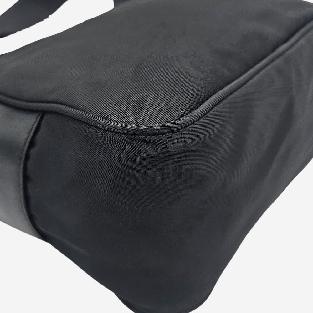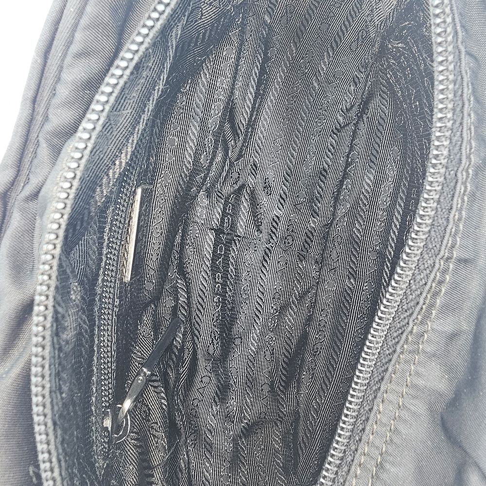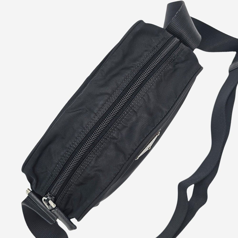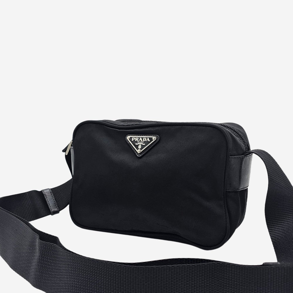 Inspireret af militærets faldskærme, begyndte Prada at arbejde med nylon i 1984. Efter Prada´s relancering af nylon-taskerne, er de gamle vintage tasker blevet et hit igen. Denne taske er fremstillet i nylon og er udsmykket med deres berømte mærkevarelogo. Taskens hovedrum lukkes med lynlås, og kan indeholde pung, telefon, nøgler samt solbriller. Dette rum har yderligere en indvendig lynlåslomme. Tasken har desuden et udvendigt rum på front som også lukkes med lynlås. Tasken er ideel for alle og kan justeres i stofremmen, så den kan bæres både som skuldertaske og crossbody. Tasken er unisex og er fantastisk til både mænd og kvinder.