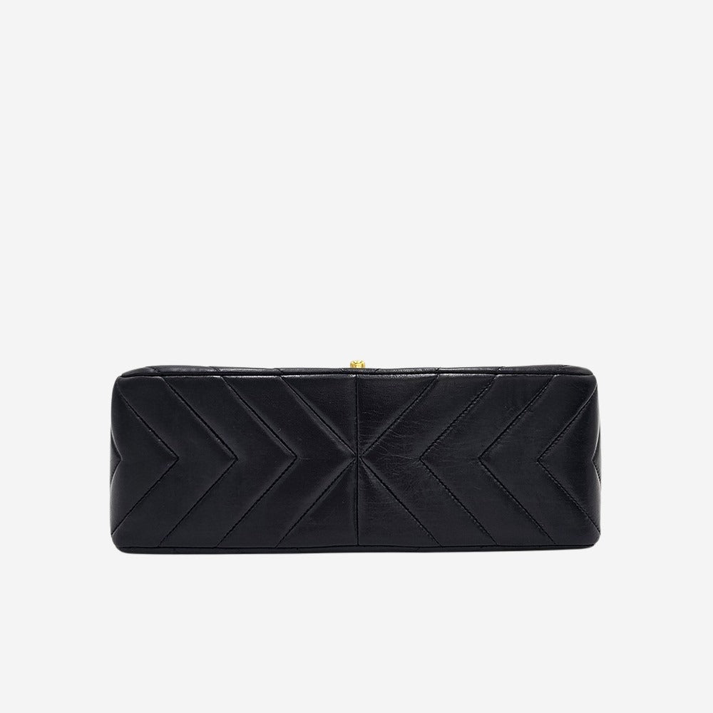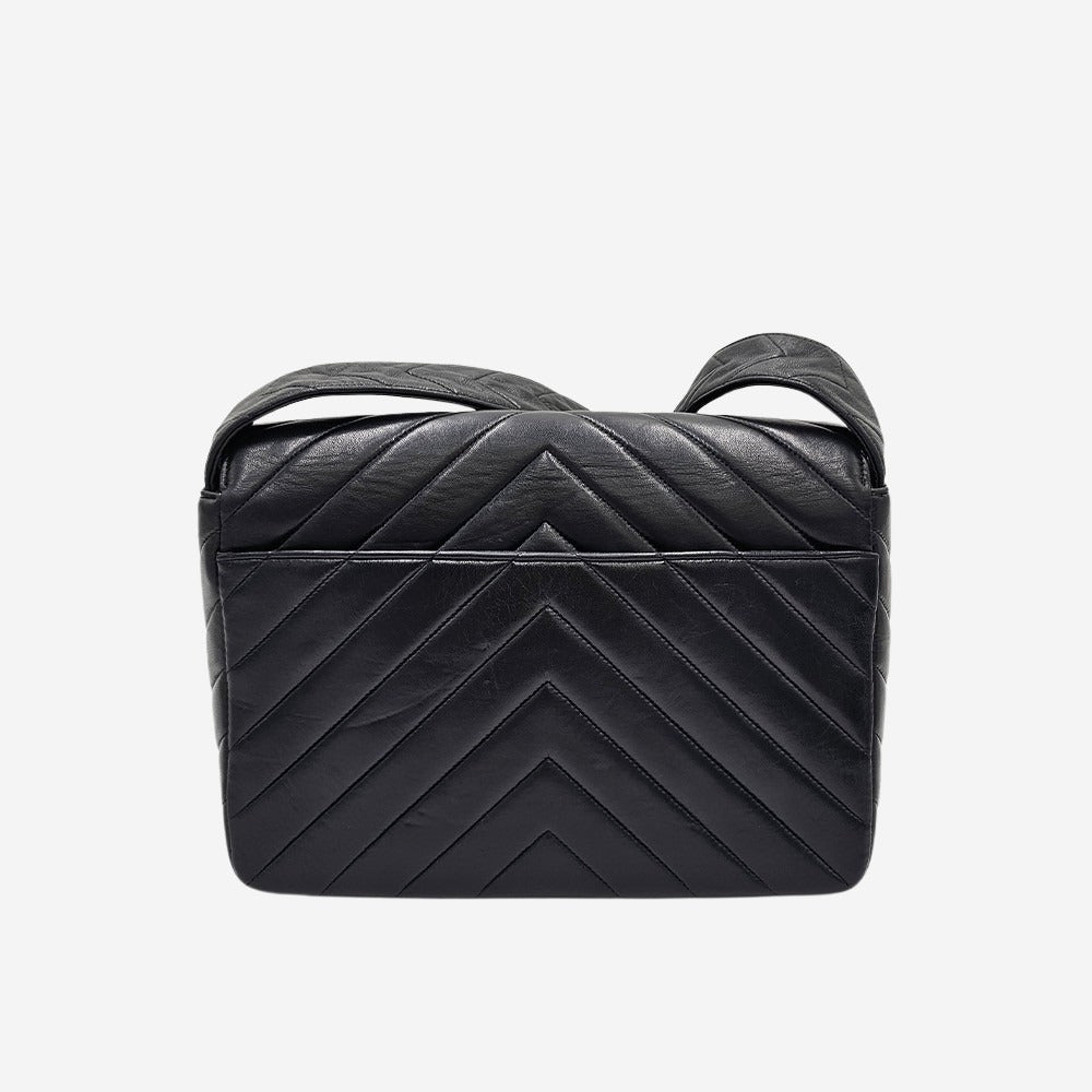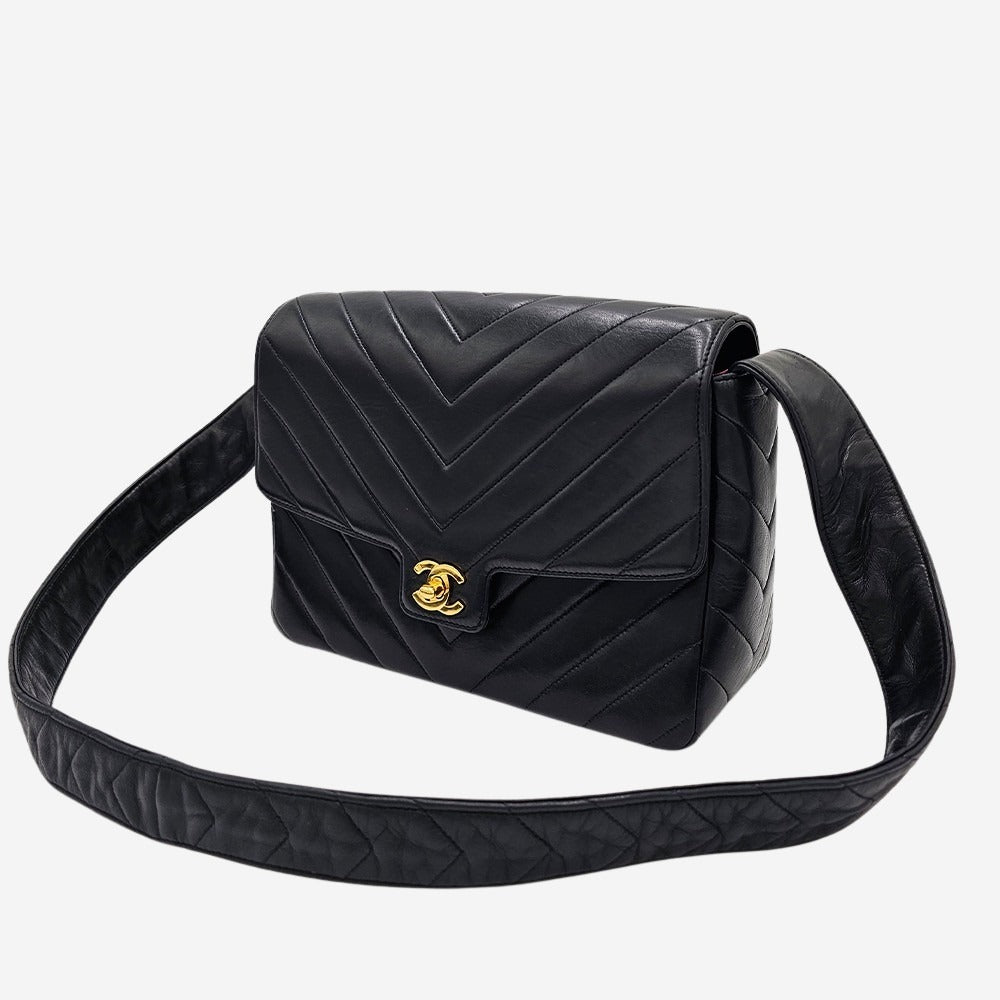 Denne meget smukke og unikke vintage flap bag er efter vores mening, fra Karl Lagerfelds bedste årti - nemlig 1990'erne. "Diamond quilt" er et af Chanels mest ikoniske designs, men Chevron quiltningen eller også kaldet "V-stich" er helt unik. Som erstatning for de diamantformede syninger, er V linjer quiltet over hele denne smukke vintage crossbody taske. Den er fremstillet i utroligt slidstærkt læder med ægte 24 karat guldbelagt hardware. Taskens hovedrum kan indeholde pung, telefon, solbriller, nøgler mm. Derudover har den 1 indvendig lynlåslomme samt 1 indvendig sliplomme. Den perfekte crossbodytaske til hverdag.