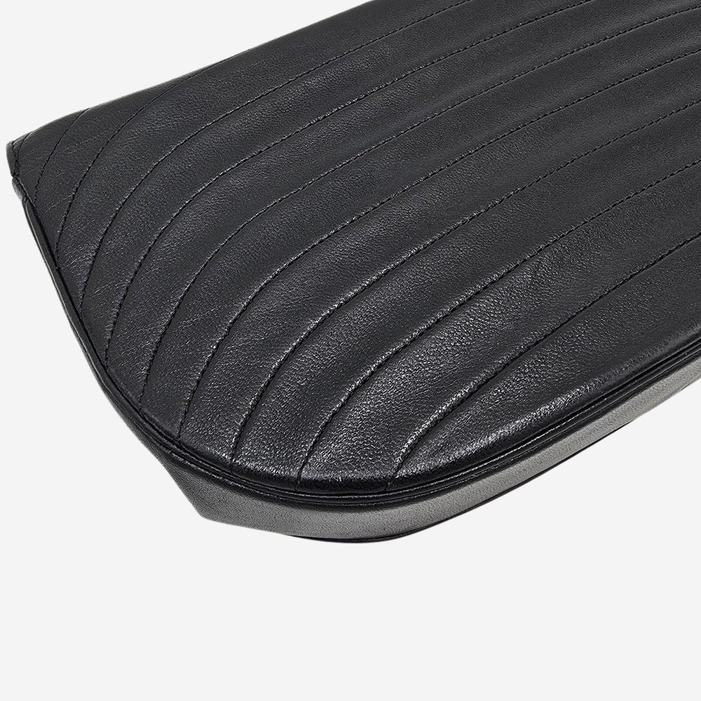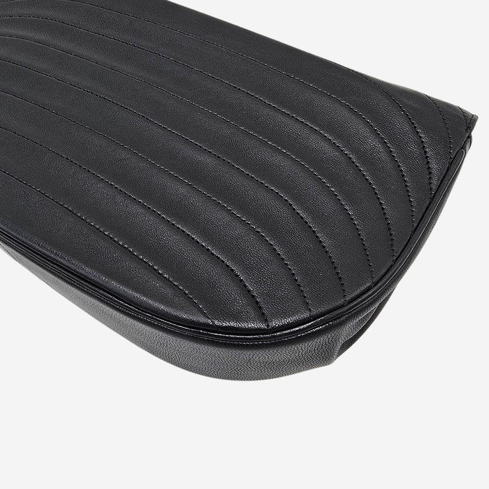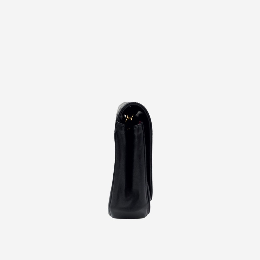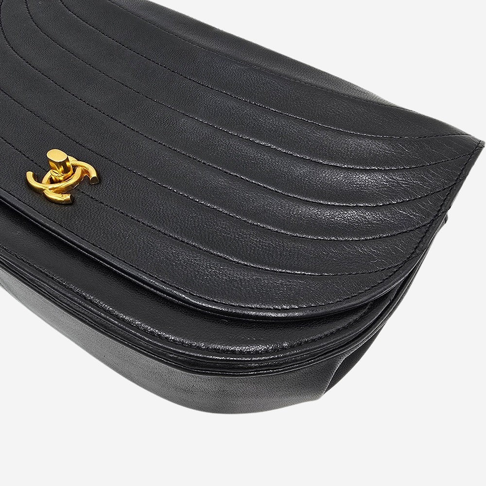 Denne meget smukke, unikke og sjældne vintage halfmoon flap bag, er fra Karl Lagerfelds spæde år hos Chanel og fra serienummerets begyndelse. Den er fremstillet i utroligt slidstærkt kalvelæder, ægte 24 karat guldbelagt hardware og bordeauxfarvet interiør. Taskens hovedrum kan indeholde pung, telefon samt nøgler. Derudover har den yderligere 1 indvendig lynlåslomme. Den perfekte taske til både hverdag og fest. Den er desuden designet således at kæden kan gemmes indeni tasken og dermed kan den også bruges i hånden som clutch/pung.