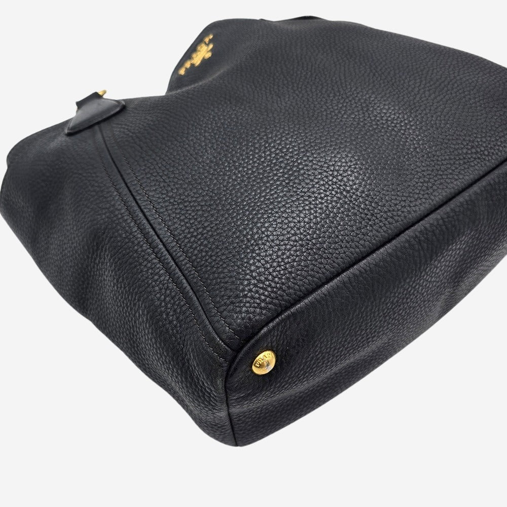 Denne smukke Prada Vitello Daino taske er en perfekt kombination af elegant design og praktisk funktionalitet. Fremstillet i det ikoniske Vitello Daino-læder, som er kendt for sin holdbarhed, fleksibilitet og naturlige tekstur, er denne taske et must-have for enhver, der ønsker en stilfuld og alsidig accessory til både hverdag og særlige anledninger. Med to praktiske sidelommer er den perfekt til de mest nødvendige ting, som f.eks. din telefon eller nøgler. Hovedrummet har plads til dine daglige fornødenheder, såsom en pung, makeup, computer og meget mere. Desuden har tasken 1 indvendig sliplomme samt lynlåslomme.