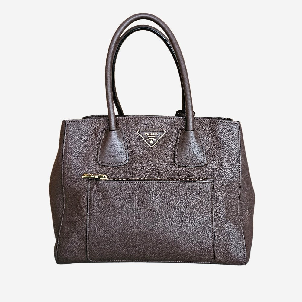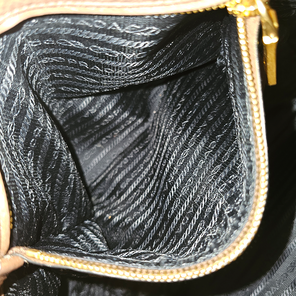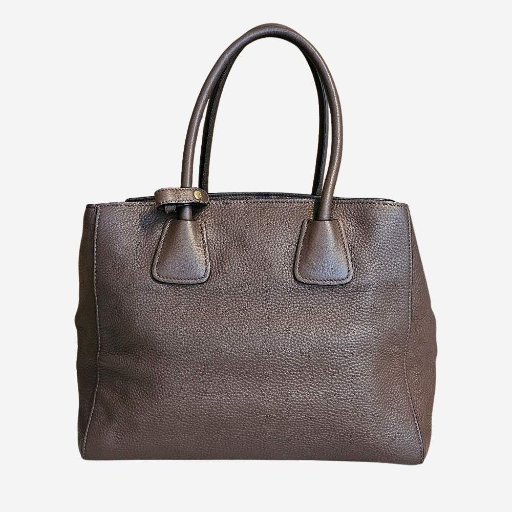 Denne smukke Prada Vitello Daino taske er en perfekt kombination af elegant design og praktisk funktionalitet. Fremstillet i det ikoniske Vitello Daino-læder, som er kendt for sin holdbarhed, fleksibilitet og naturlige tekstur, er denne taske et must-have for enhver, der ønsker en stilfuld og alsidig accessory til både hverdag og særlige anledninger. Hovedrummet har plads til dine daglige fornødenheder, såsom computer, vandflaske, paraply og meget mere. Desuden har tasken 1 indvendig sliplomme samt 2 lynlåslommer som kan rumme dine løse genstande som telefon, pung og nøgler. Den perfekte arbejdstaske.