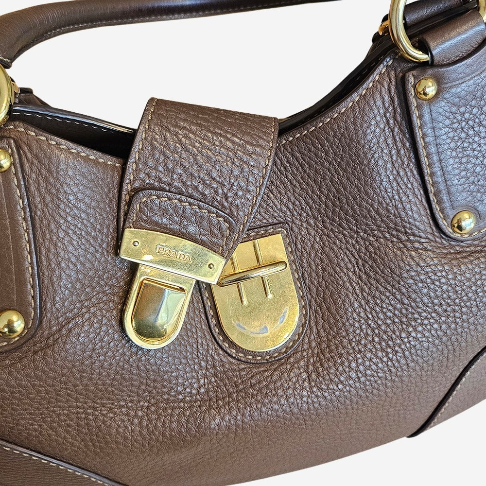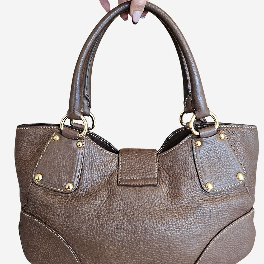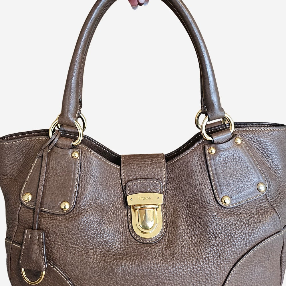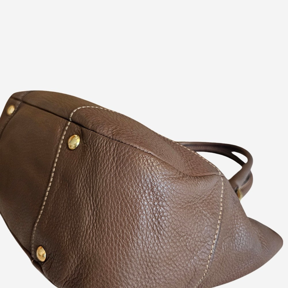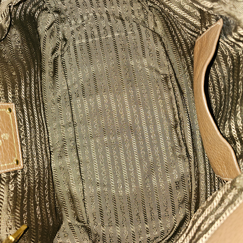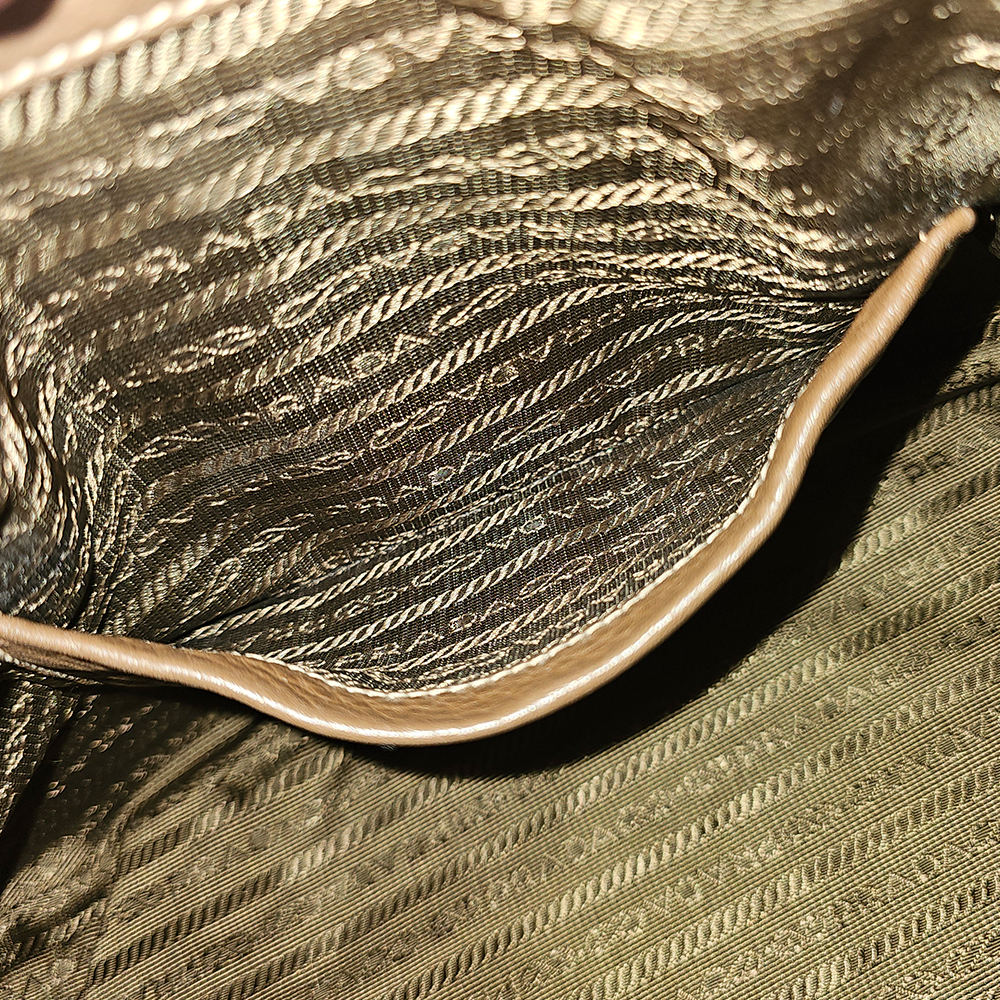 Denne smukke Prada Vitello Daino taske er en perfekt kombination af elegant design og praktisk funktionalitet. Fremstillet i det ikoniske Vitello Daino-læder, som er kendt for sin holdbarhed, fleksibilitet og naturlige tekstur, er denne taske et must-have for enhver, der ønsker en stilfuld og alsidig accessory til både hverdag og særlige anledninger. Hovedrummet har plads til dine daglige fornødenheder, såsom vandflaske, computer, paraply og meget mere. Desuden har tasken 1 indvendig sliplomme samt 1 lynlåslomme som kan rumme dine løse genstande som telefon, pung og nøgler. Den perfekte hverdagstaske.