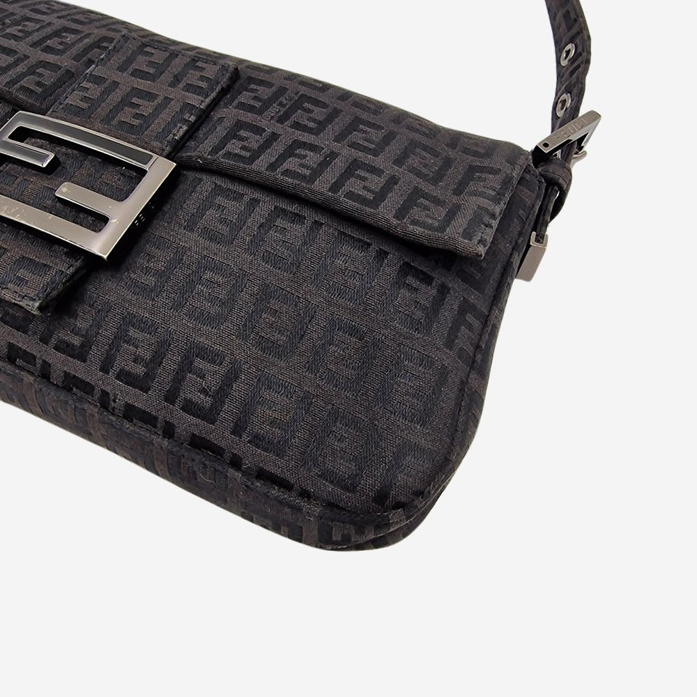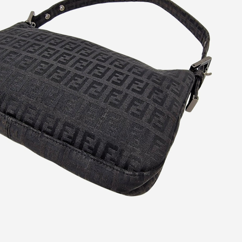 Den ikoniske Baguette fra Sex and the City er tilbage. Fendi’s Baguette var den første ‘IT bag’ tilbage i 90’erne, og som Carrie sagde det: "It's not a bag. It's a Baguette". Fendi Baguette er det ultimative vintage design. Den er fremstillet i deres populære sorte canvas, trykt med deres signatur Zucca monogram. Tasken har 1 hovedrum samt en indvendig lomme som lukkes med lynlås. Tasken rummer pung, telefon, solbriller samt nøgler. Taskens rem kan justeres og er aftagelig. Der kan derfor tilsættes længere rem hvis tasken evt. skal bruges som crossbody.