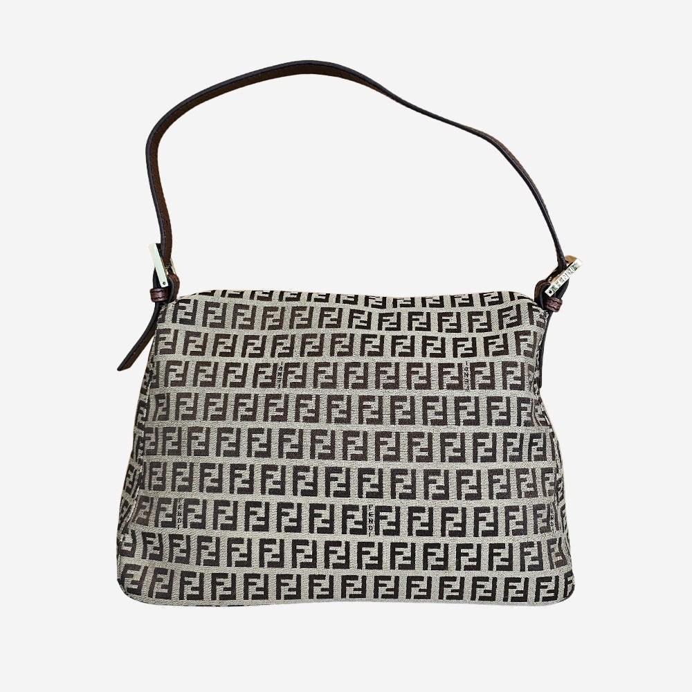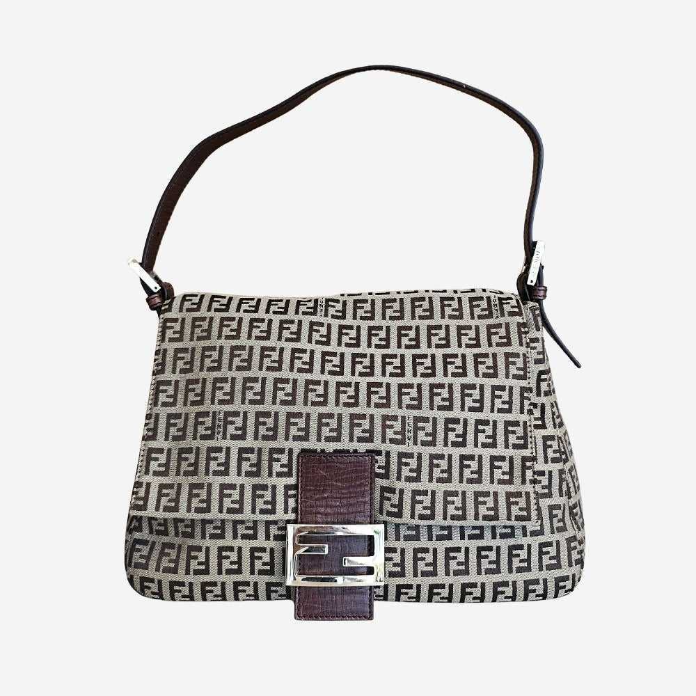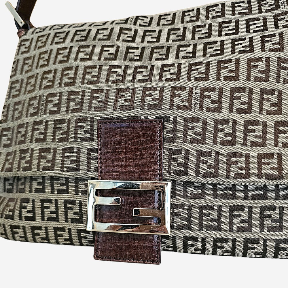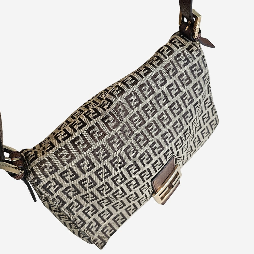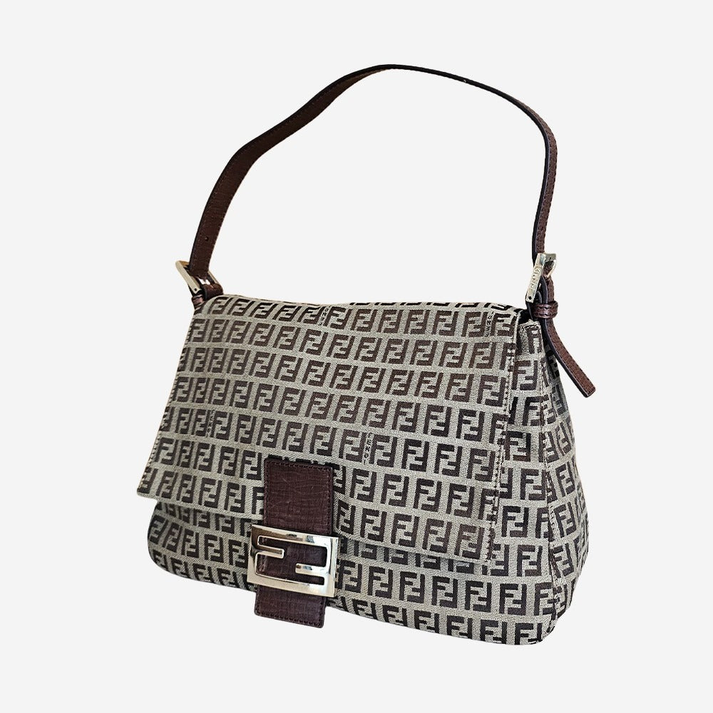 Den ikoniske Baguette fra Sex and the City er tilbage. Fendi’s Baguette var den første ‘IT bag’ tilbage i 90’erne, og som Carrie sagde det: "It's not a bag. It's a Baguette". Fendi Baguette er det ultimative vintage design. Denne Baguette er Mamma udgaven som er nummeret større end den rektangulære almindelige baguette taske. Den er fremstillet i deres populære brune canvas med deres signatur Zucca monogram. Derudover læderrem i brun samt guld hardware. Tasken har 1 hovedrum samt en indvendig lomme som lukkes med lynlås. Tasken rummer pung, telefon, solbriller, nøgler, makeup pung mm. Taskens rem kan justeres og er aftagelig. Der kan derfor tilsættes længere rem hvis tasken evt. skal bruges som crossbody.