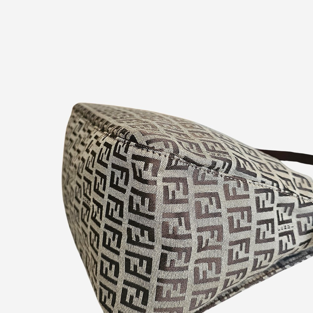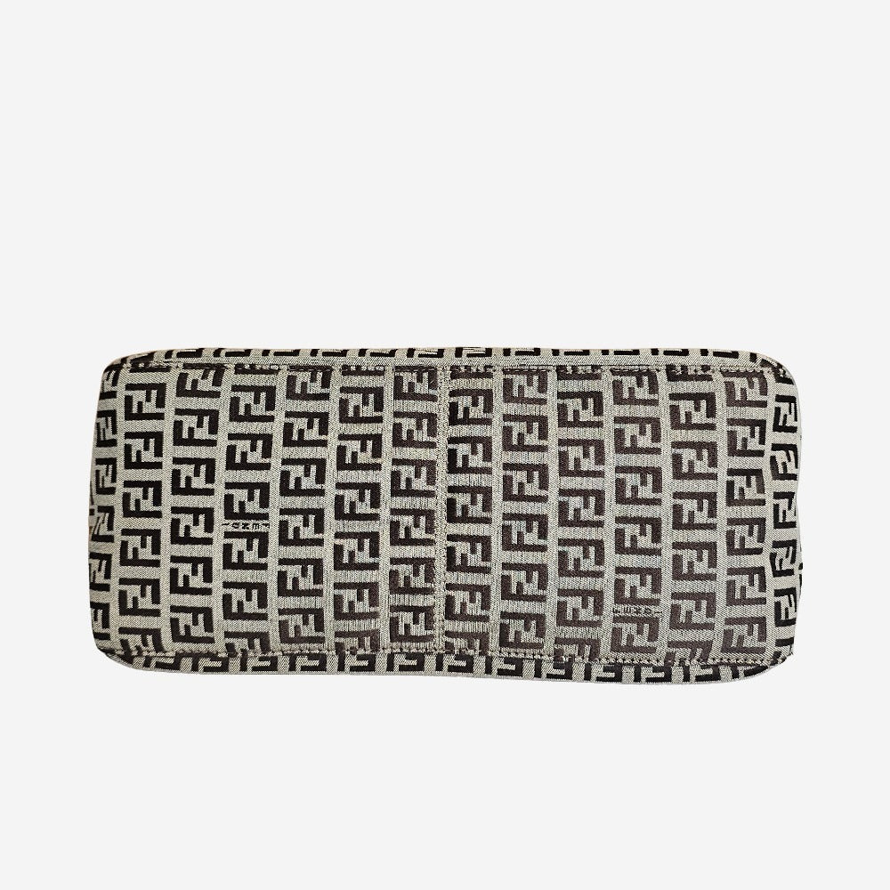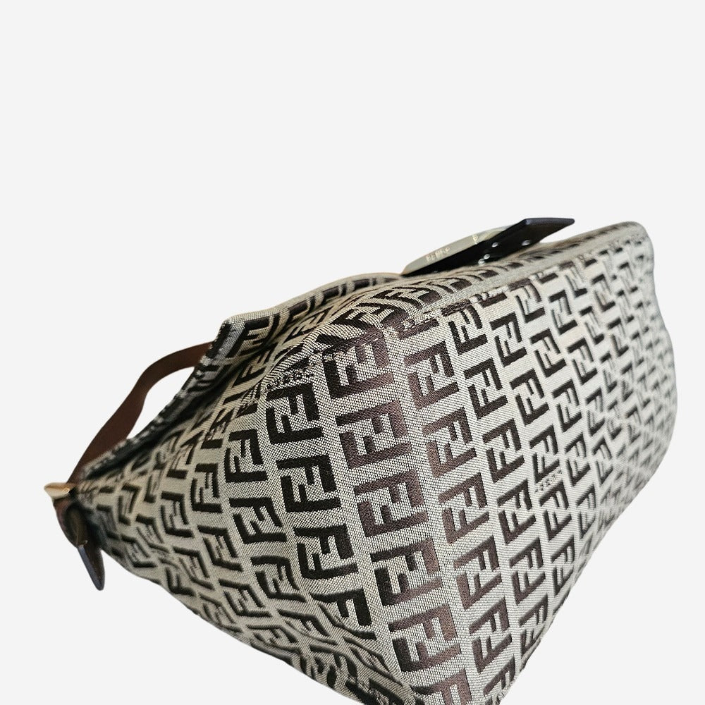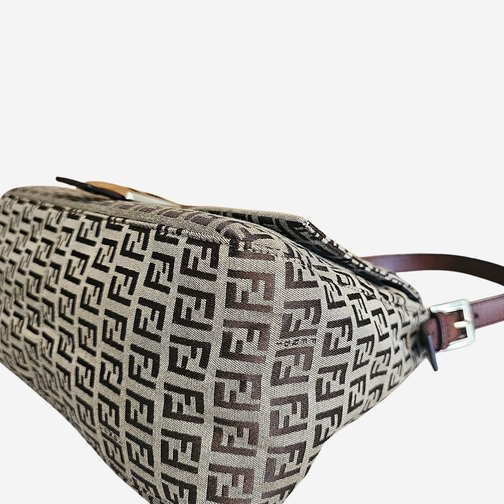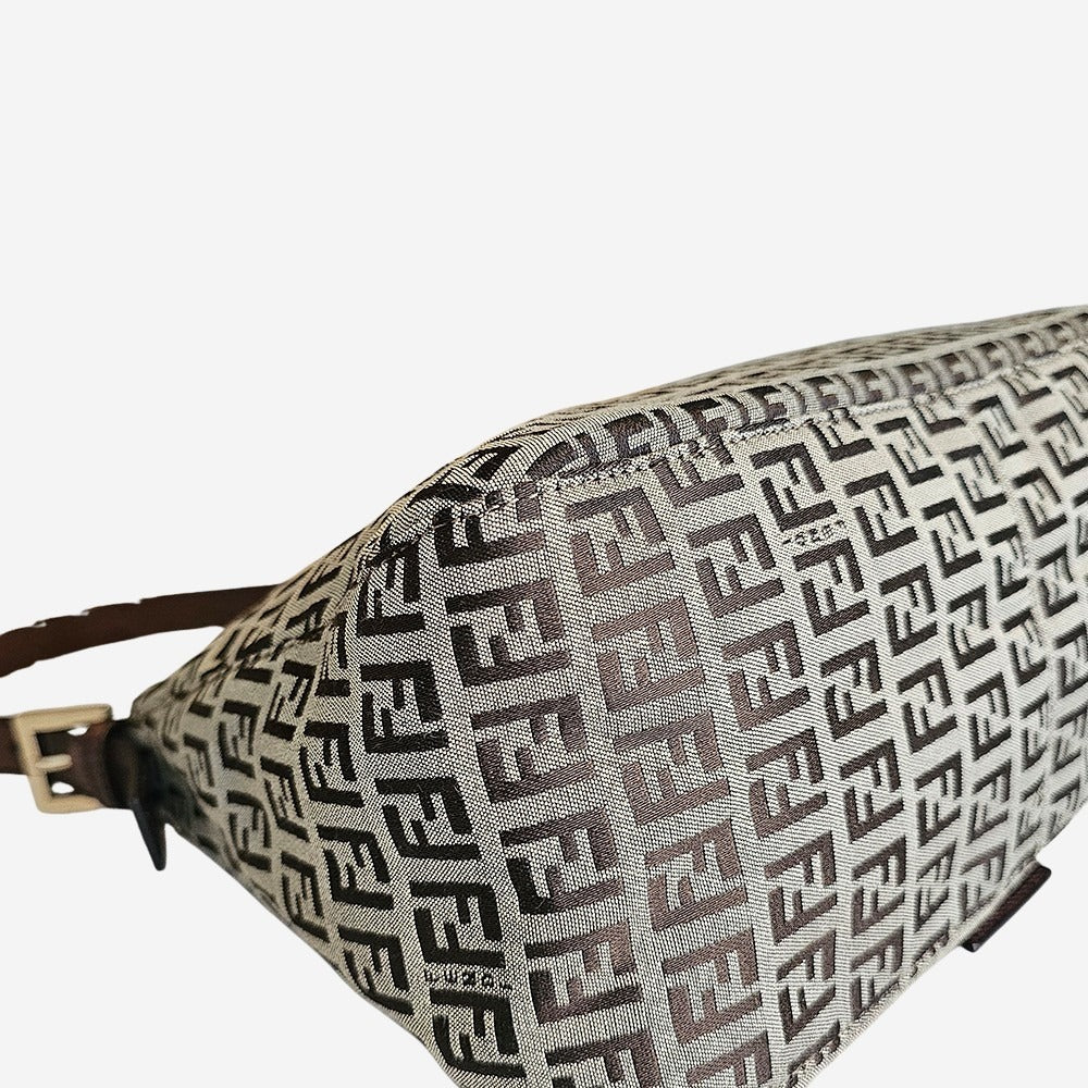 Den ikoniske Baguette fra Sex and the City er tilbage. Fendi’s Baguette var den første ‘IT bag’ tilbage i 90’erne, og som Carrie sagde det: "It's not a bag. It's a Baguette". Fendi Baguette er det ultimative vintage design. Denne Baguette er Mamma udgaven som er nummeret større end den rektangulære almindelige baguette taske. Den er fremstillet i deres populære brune canvas med deres signatur Zucca monogram. Derudover læderrem i brun samt guld hardware. Tasken har 1 hovedrum samt en indvendig lomme som lukkes med lynlås. Tasken rummer pung, telefon, solbriller, nøgler, makeup pung mm. Taskens rem kan justeres og er aftagelig. Der kan derfor tilsættes længere rem hvis tasken evt. skal bruges som crossbody.
